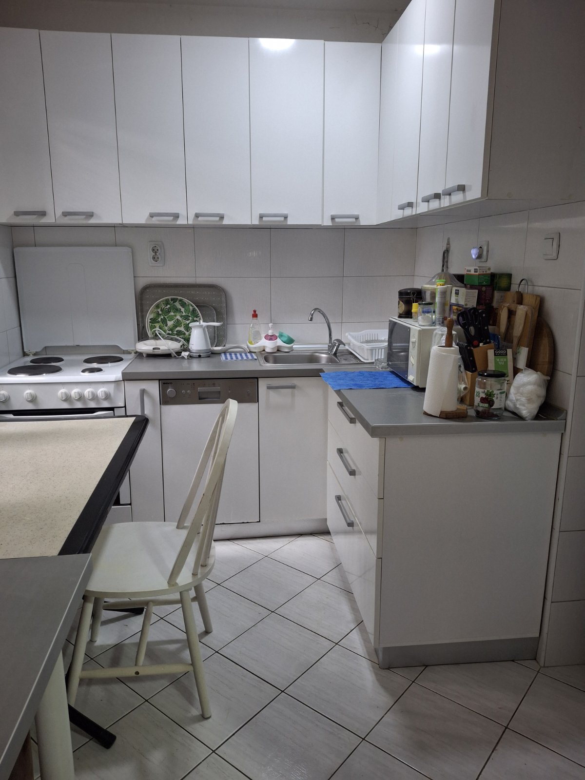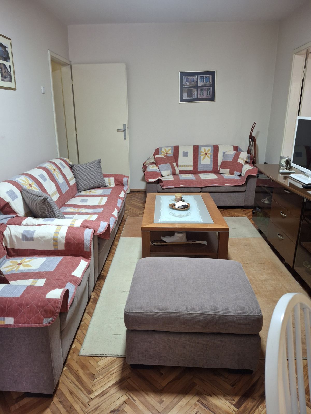 Stan vo naselba Karpos 3, zad Leptokarija, vo mirna zona so parkovi i parkinzi. Stanot ima dneven boravok, otvorena kujna, zagradena terasa od 7 m2. Hodnik koj gi spojuva kujnata, dnevniot boravok i toaletot vo koj e smestena masina za perenje alista. Od dnevnata soba, ima dve pomali spalni dovolno golemi za ful size lezaj so plakari. Dvete sobi imaat prozori. Orientacija jugo zapad. Stanot poseduva i podrum od 6 m2. Se prodava namesten, cenata e neznacitelno promenliva vo slucaj da sakate bez mebel.Zgradata nema lift, no stanot e na visiko prizemje. Za podobrena bezbednost, site nadvoresni prozorci imaat kovano zelezo ograda. Osven parno koe e gradsko, stanot ima i inverter klima od 5 kw Panasonik.
